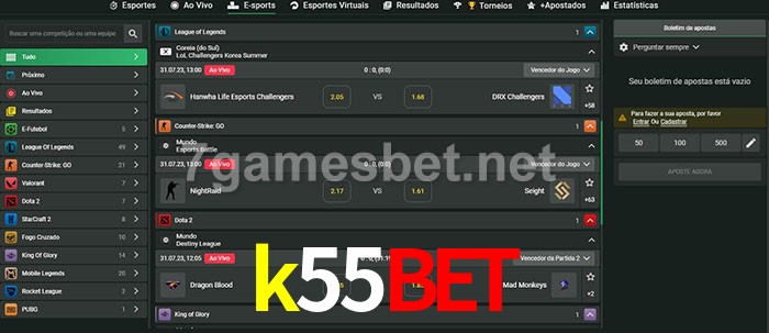 O k55bet oferece uma grande seleção de opções de apostas em e-sports com probabilidades competitivas